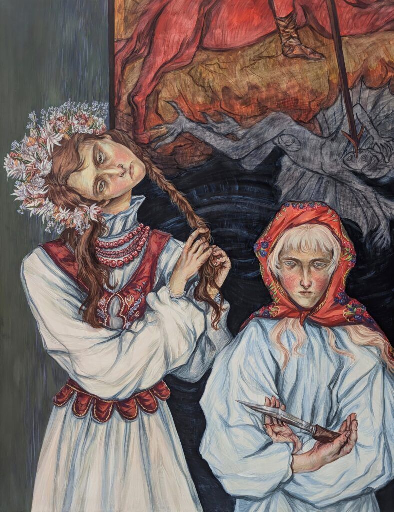 You mentioned being inspired by folk and esoteric traditions. These often carry warnings hidden inside beauty; cautionary tales wrapped in embroidery. How do you approach that kind of coded storytelling in your own work?