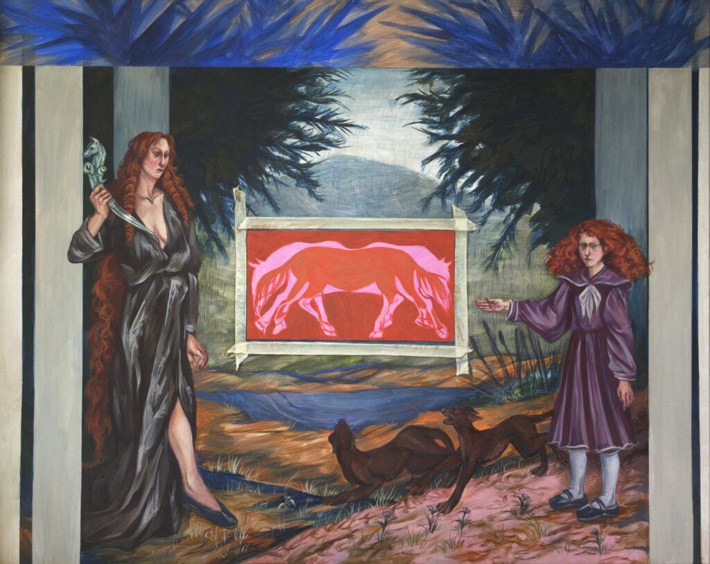 For me, such means are primarily part of the narrative. They can be considered one of many tools that tell the story in different ways and introduce new contexts. For example, the introduction of a fragmentary image, a kind of picture within a picture, creates a different narrative area than what does not belong to this space. In the painting “Khavele,” the image in the background is a fragment of the Wawel tapestry depicting the Creation of Eve – the main character of this work is a travelling image strongly associated with the specificity of archetypes similar to the biblical Eve.