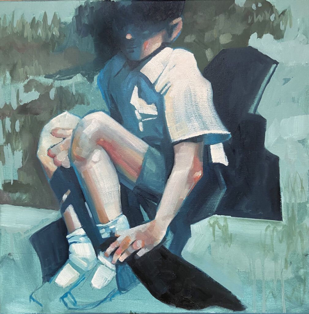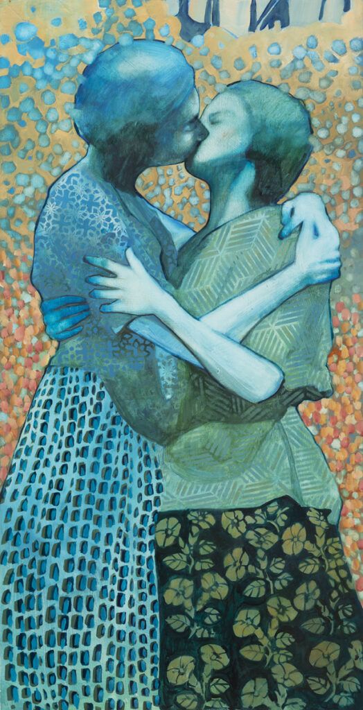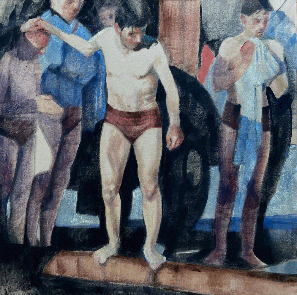 I don’t think of my paintings of people as portraits, it’s something to do with their bodily gestures. We reveal ourselves through our bodies and in relationship to other people. So, I hope to show this in my paintings – in the way someone stands, or their gaze.