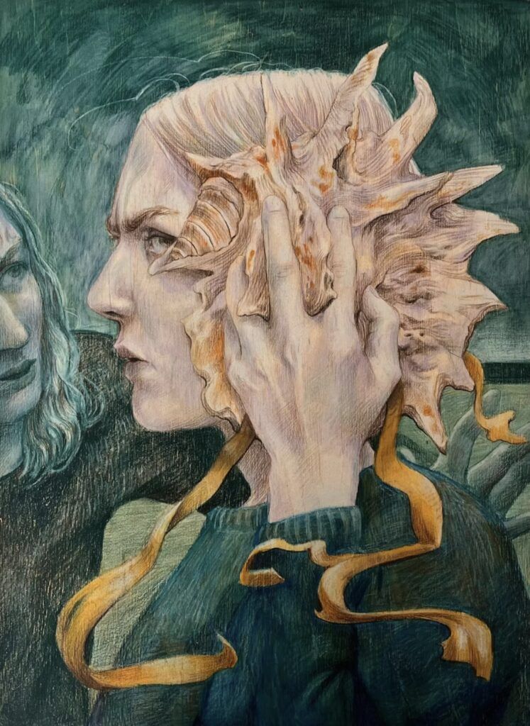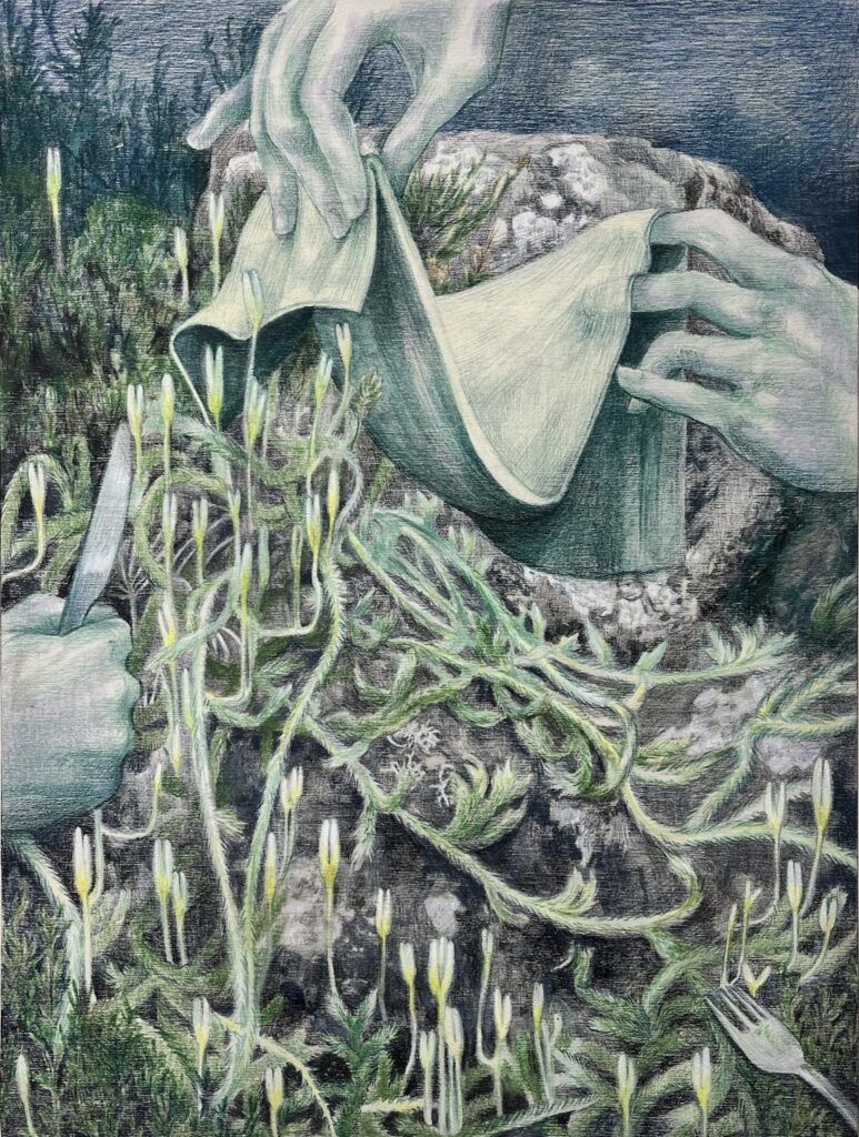 Magical realism feels like the most fitting genre for my work because I’m reflecting on reality, but allowing my response to wander into the strange or impossible. I value observational drawing as a discipline to keep my ability sharp, so that I can make my finished artworks completely from my imagination. Since the works are made without reference, it allows for me to let the fantasy in, so I’m never tied to an image.