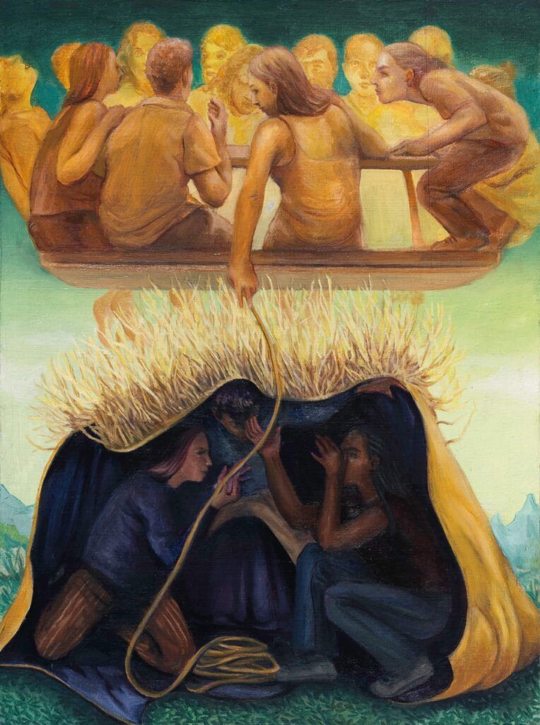 I hope that the uncanny spaces in my work feel familiar enough that the viewer can place themselves in the scene, but obscure enough that they’re looking at something that starts a series of questions, or imaginative interpretations in their own heads. I want the viewer to feel included in the worlds I’ve created, but to feel slight unease or excitement about the aspect they may not immediately understand, making them look for a longer time.