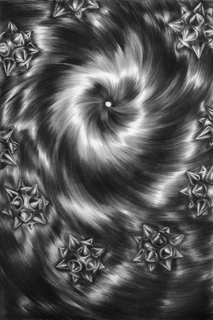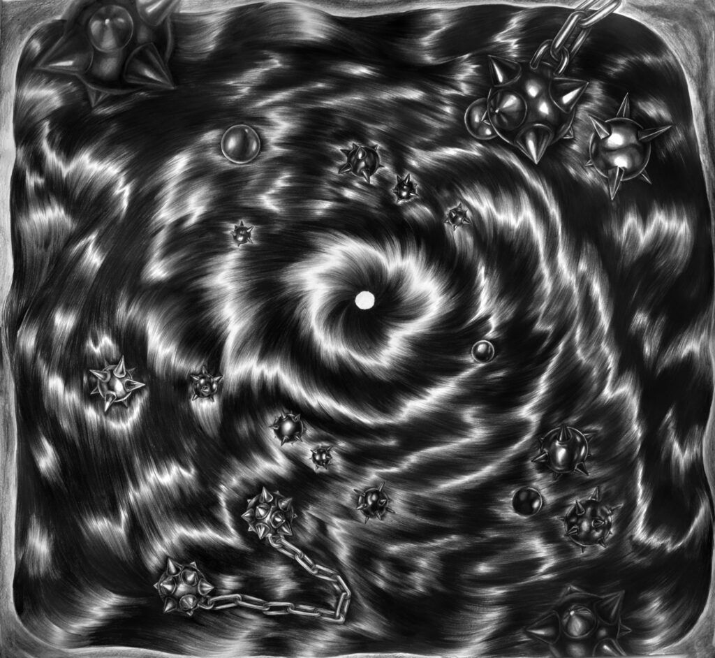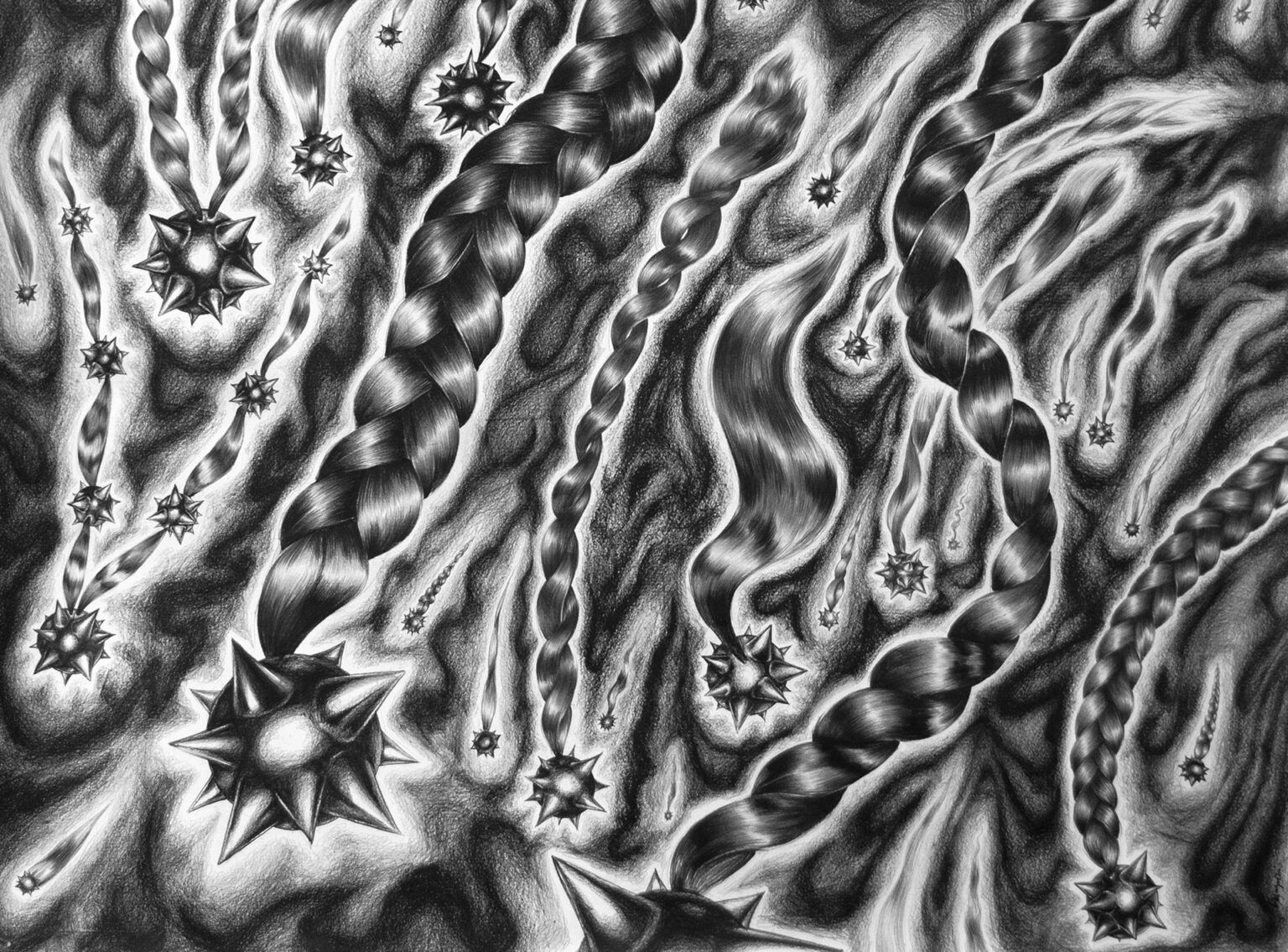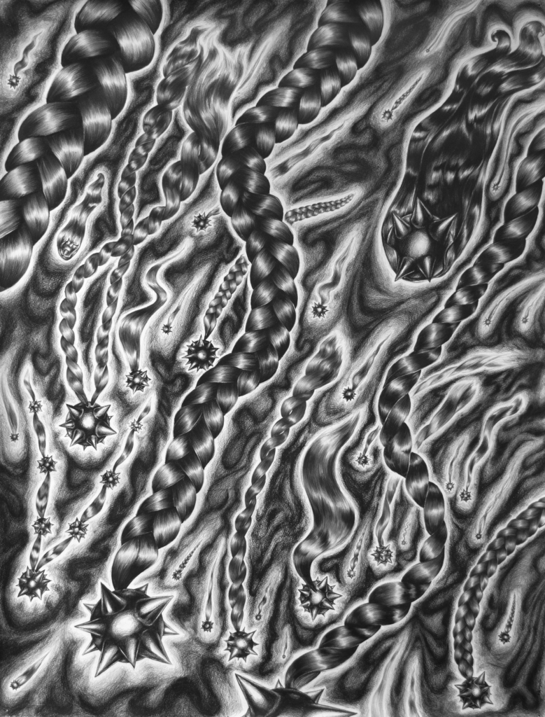 Your pencil drawings are known for their dense patterns and textures like medieval engravings. How do you approach the medium to make it almost equal to the theme of your work?