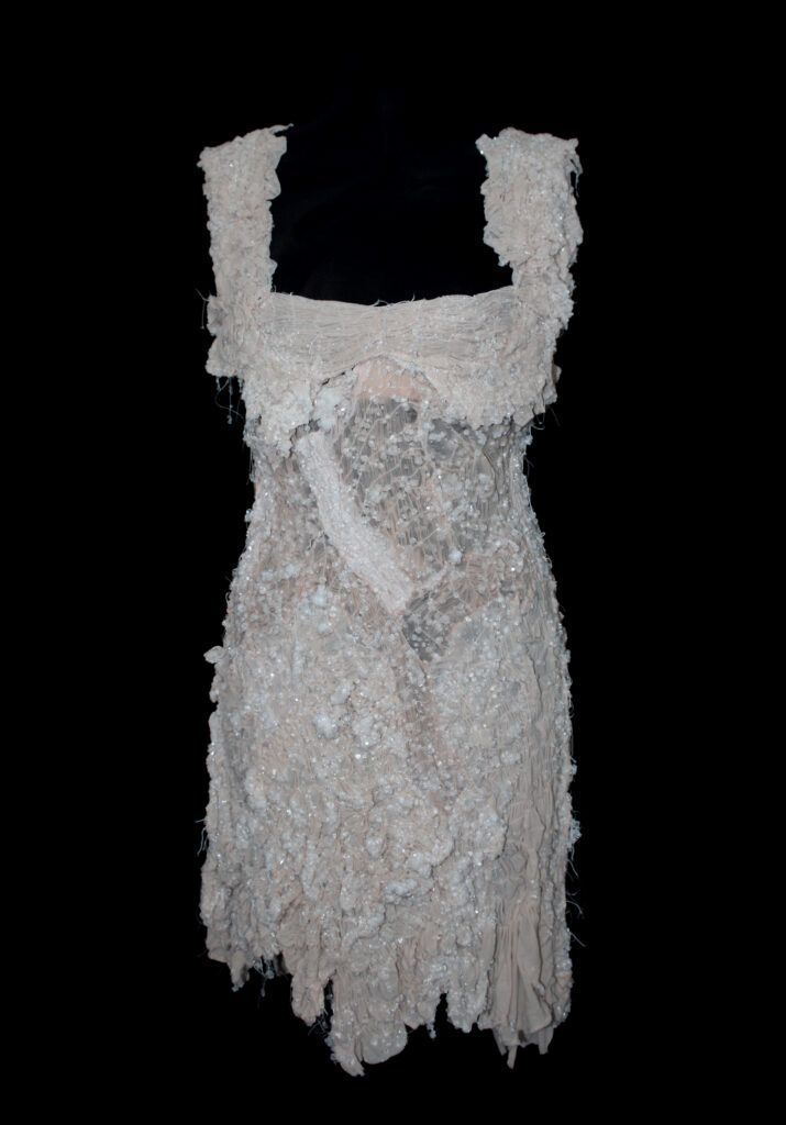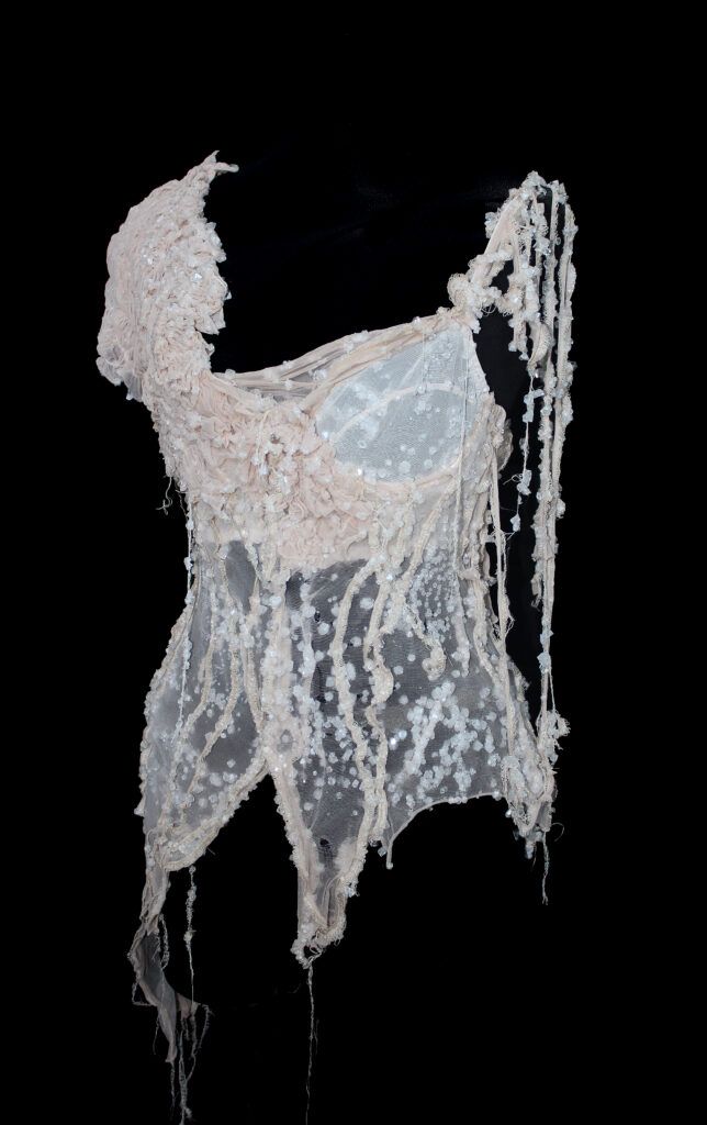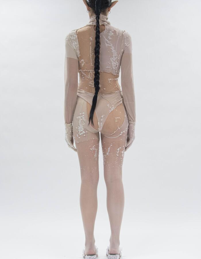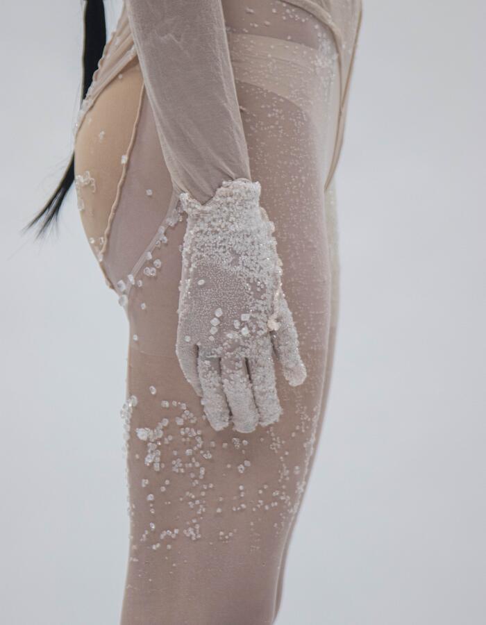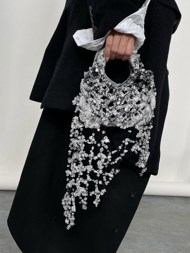 My work sits somewhere between clothing and sculpture. It often starts as a garment, but once it goes through the crystallisation process, it changes, becoming more fragile and temporary. Technically, you could wear it, but that’s not really the point. The fact that it can’t be worn easily makes it even more interesting. There’s a tension in that: it looks like fashion, but it behaves like art. They feel more like frozen moments, delicate and meaningful, as if they hold a quiet kind of importance. I don’t really see them as garments anymore. To me, they’ve become art objects. My process is deeply experimental, I call every single item I create an experiment. Each piece is truly one of a kind, shaped by the unique growth patterns of the crystals, which cannot be duplicated or reproduced. I also believe that fashion doesn’t have to be wearable all the time. Sometimes, its power lies in provoking thought, emotion and challenging our ideas about what clothing can be.