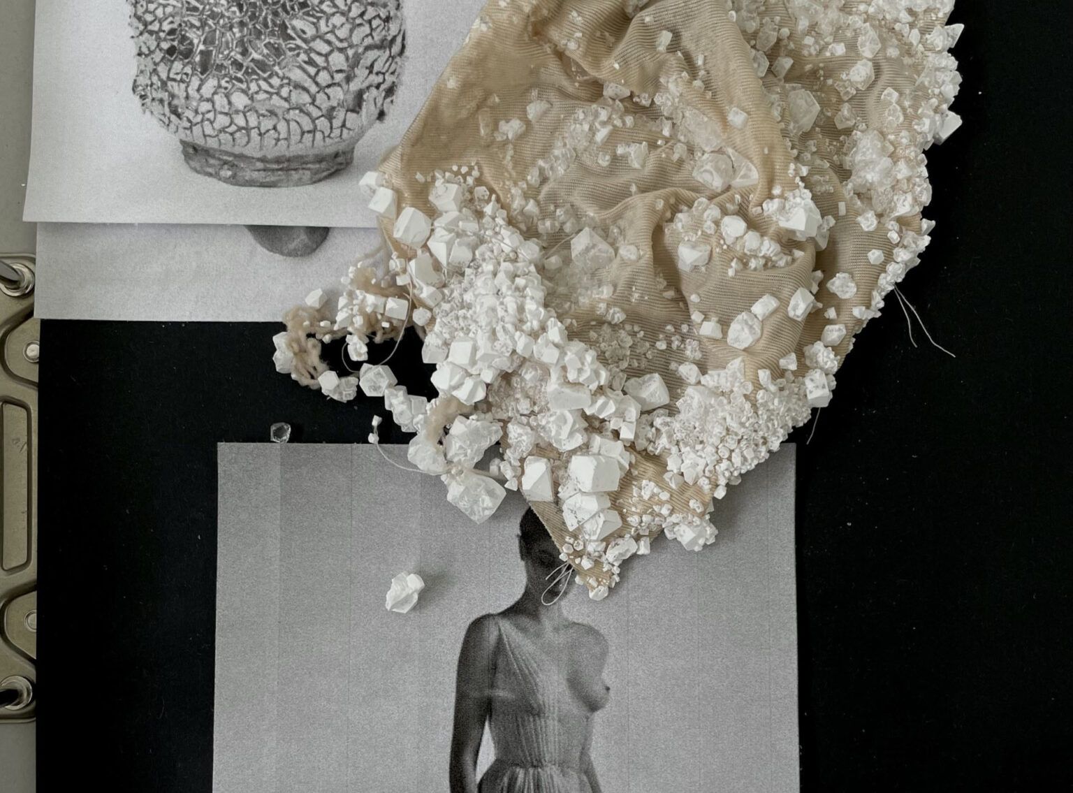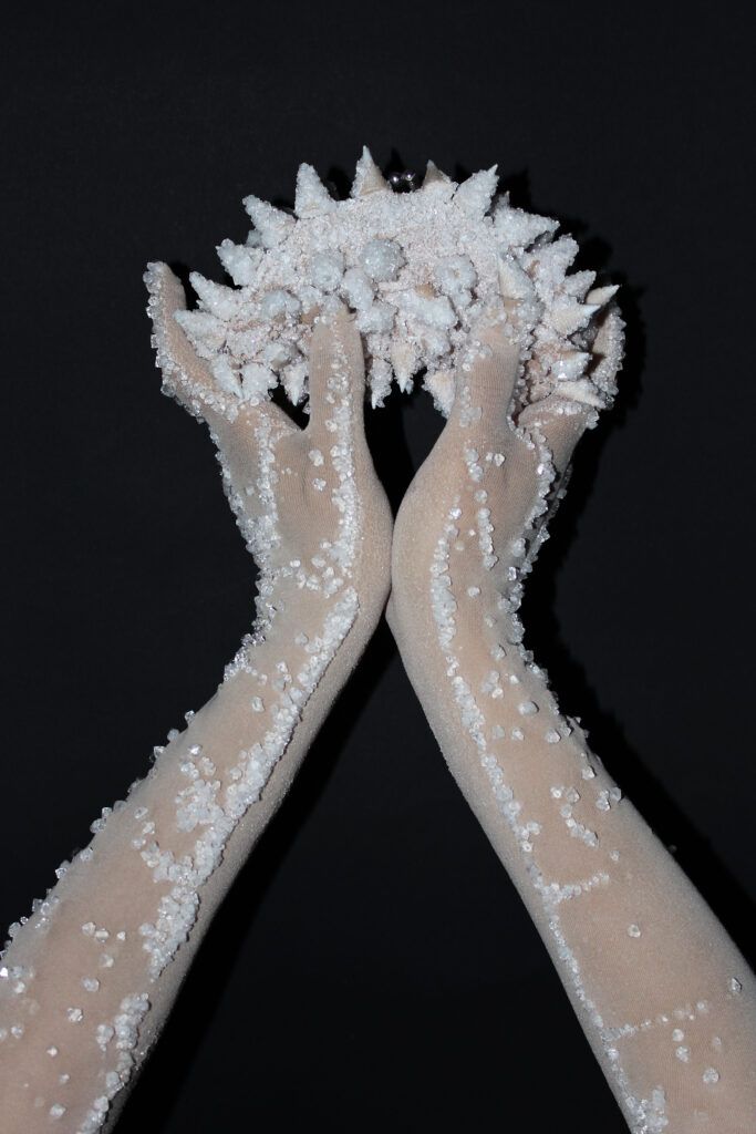 I knew I wasn’t the first to crystallise garments or objects with salt, there are a few artists and designers who have explored it before me. But I was determined to find my own signature within that process. I began blending different types of salt together to create new textures and formations. During graduation, I didn’t have the time to fully refine the technique, but I knew I had found something meaningful. After graduating, I continued developing it simply because I loved the process. Now, three years later, I’m still learning. Crystallisation keeps surprising me. Each experiment feels like a new discovery and, because of the nature of the process, every piece is one-of-a-kind. I couldn’t duplicate them even if I tried.