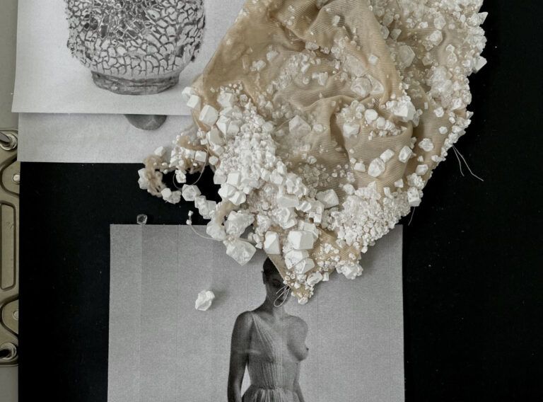 On her unorthodox journey from pathology to fashion design, Sumeyya Donmez arrived at the preferred creative tool of expression: the time-intensive and unpredictable process of salt crystallisation. Reminiscent of clothes swept into the ocean at high tide, Sumeyya’s collections sit somewhere between a garment and a sculpture. Read more about the symbolism of salt, savouring slowness and waiting, and how actually wearing the clothes sometimes isn’t the point in the in-depth interview with the designer.