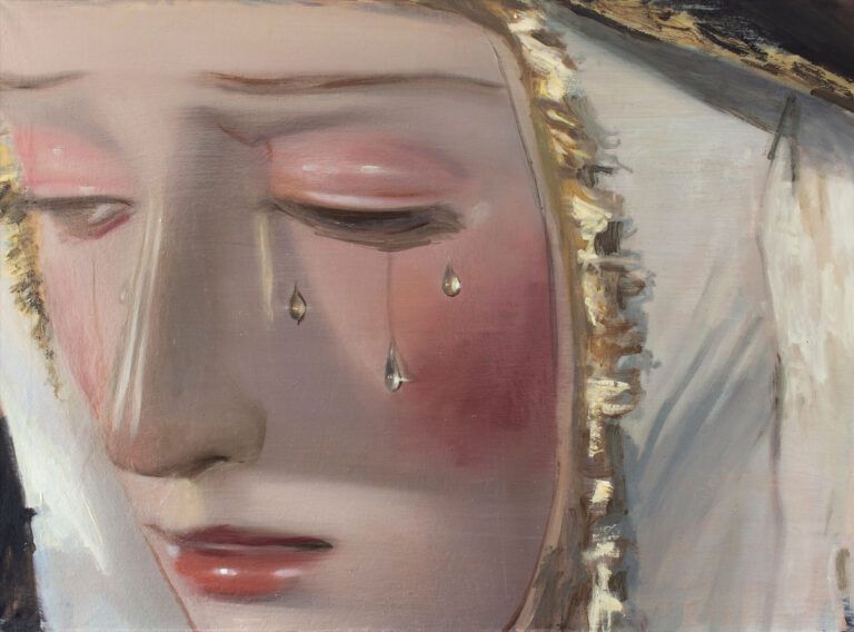 “Passionate love appears very similar to religious obsession.” What initially draws the eye to Edyta Olszewska’s paintings are the ubiquitous scattered glints and gleams – but once you get past the form and technique, it’s the symbolism that makes you stay. In the interview, Edyta talks about leaning into the mesmerising power of Christian processions in all their solemnity, drama, and opulence, ecstatic tensions, challenging inner dualities, and more.