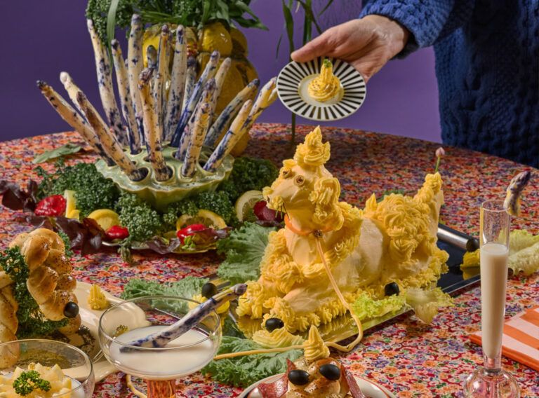 Is this a bombastic, ornate, and slightly disturbing version of a foodie heaven? We’ve suspended our freshest editorial in a peculiar type of timelessnes, which is both nostalgic and futuristic, and references the era when food styling was less homogenous and more unhinged. Enjoy a new collab between SWARM MAG, the award-winning photographer duo shotby.us, and Bláznivé bruschetty, an ingenious trio of food designers creating eye-catching and vibrant edible installations.