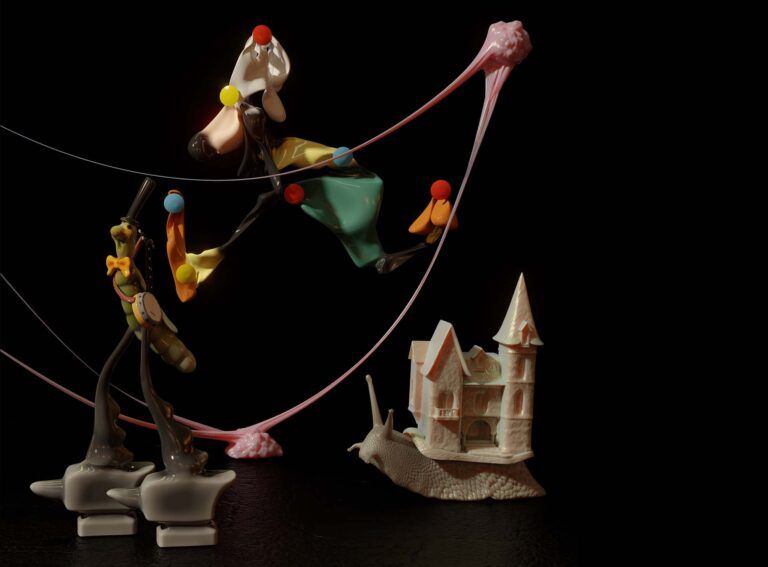 The eclectic 3D compositions of Laurent Allard breathe movement into a visual genre traditionally depicting the static. By employing digital tools, the artist creates a sense of fluidity in the materials, bordering on the grotesque and naive.